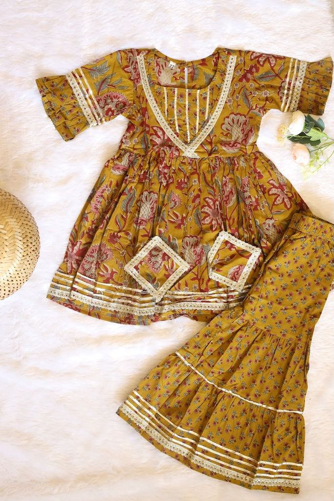 TRADITIONAL FLORAL KURTI SHARARA SET